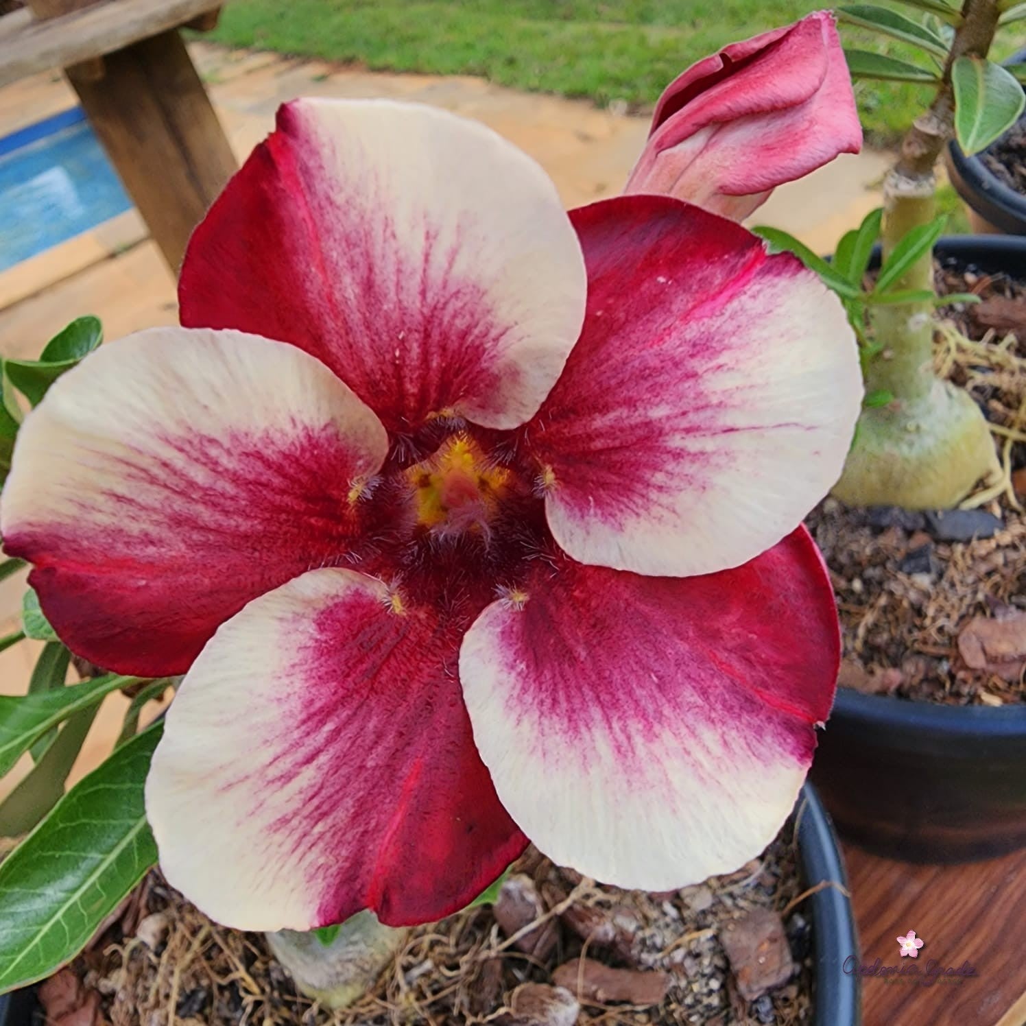 Espécie: Adenium obesum (Rosa do Deserto). Origem: Cultivada no Brasil pela Apolonia Grade. Garantia: Plantas 100% saudáveis e bem enraizadas. Floração: Abundante em condições ideais de cultivo.